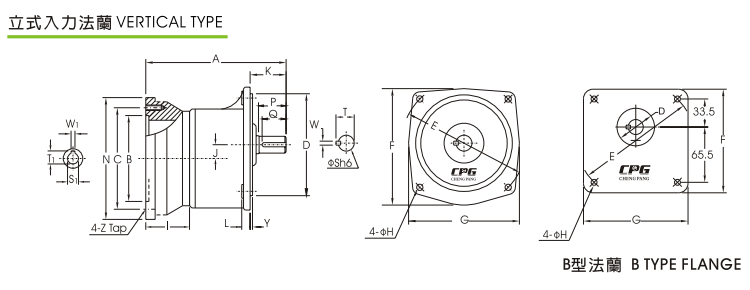 (一)下圖為CVM 立式入力法蘭齒輪減速機詳細外型尺寸參數: