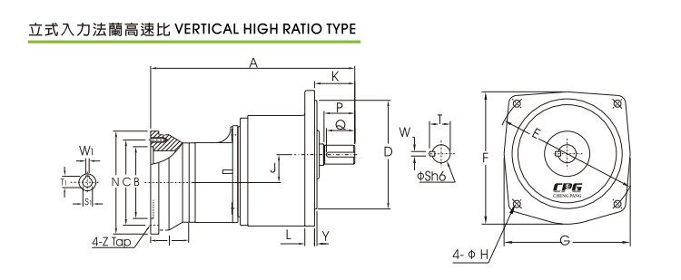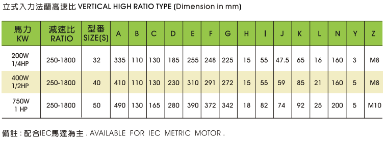 (二)下圖為CVM 立式入力法蘭齒輪減速機高速比詳細外型尺寸參數: